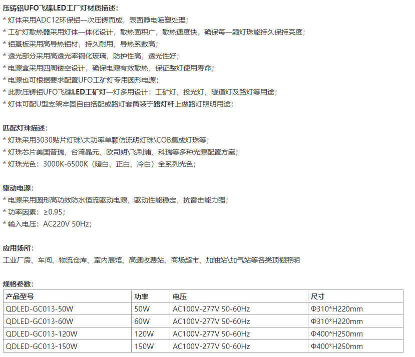 压铸铝UFO飞碟LED工厂灯